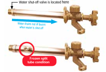 So, always remember to remove your hose before freezing weather, right? Well, yeah that is the best approach, but Woodford, a manufacturer of frost-free hose bibbs actually makes a version that has an integrated pressure relief valve (remember that pressure build up from freezing ice I talked about?) that is said to prevent rupture even when a hose is inadvertently left in place. You can even upgrade an existing Woodford model with this pressure relief valve without replacing the whole unit! We went from a time where we would have to "winterize" exterior faucets to now basically being fool-proof. What a time to be alive! The installation illustration above is from the Woodford website which I will also link to here, there is some good info: https://www.woodfordmfg.com/Woodford/